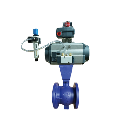 In the process of ball rotation, there is a wiping effect between the closed parts, the medium has a strong cut-off force, the ball's V-type opening and the valve seat flow path to form a fan-shaped area, in the process of rotating to change the cross-sectional area of the flow path, the formation of precise adjustment of the medium, which is a kind of angular rotary control valve, its sealing performance is the same as the ordinary ball valves, so that it has the same time with the regulation and switching of the two functions, with pneumatic or electric actuators, widely used in the industrial process of self-control system. With pneumatic or electric actuator, widely used in industrial process automatic control system.